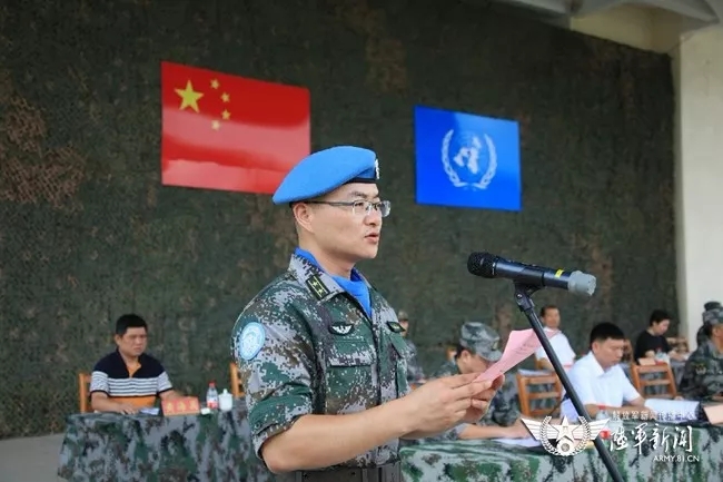 第18批赴黎巴嫩维和建筑工兵分队队长朱俊代表官兵表决心。