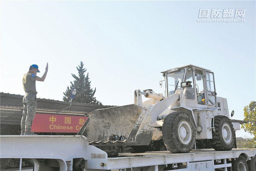 9月27日,我赴黎维和官兵装载大型机械装备,准备出发前往贝鲁特。丁文栋摄