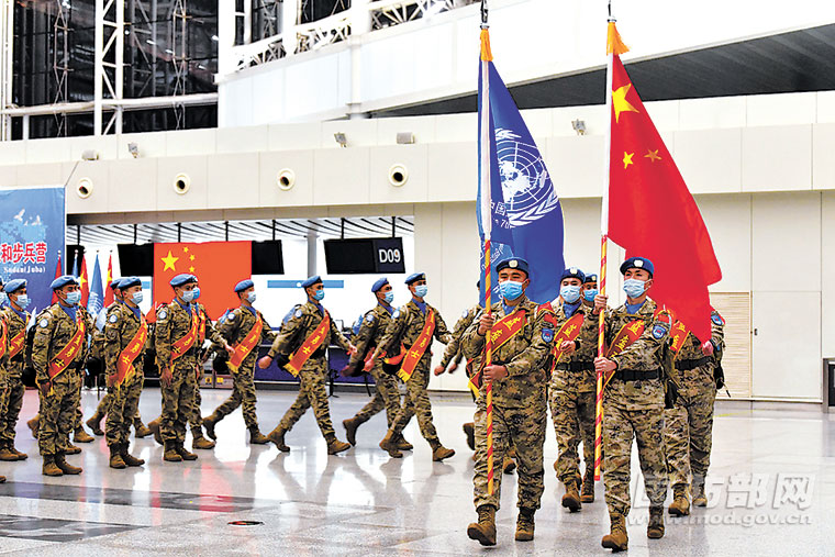 中国第7批赴南苏丹(朱巴)维和步兵营第一梯队出征仪式现场。姜慧鑫摄