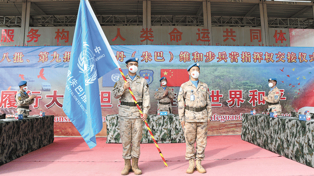 2022-12-15 10:56中国第九批赴南苏丹(朱巴)维和步兵营完成指挥权交接
