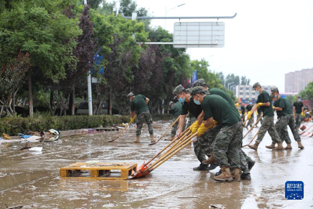 连日来,人民子弟兵听从统帅号令,牢记宗旨本色,全力以赴投入防汛抗洪救灾,全力搜救转移被困人员,持续开展清淤作业和巡堤查险等任务,书写“人民至上、生命至上”的答卷。