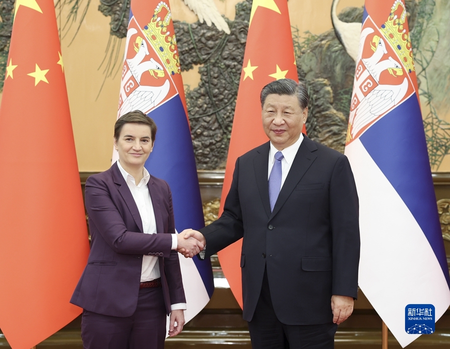 11月6日下午,国家主席习近平在北京人民大会堂会见塞尔维亚总理布尔纳比奇。新华社记者 张领 摄