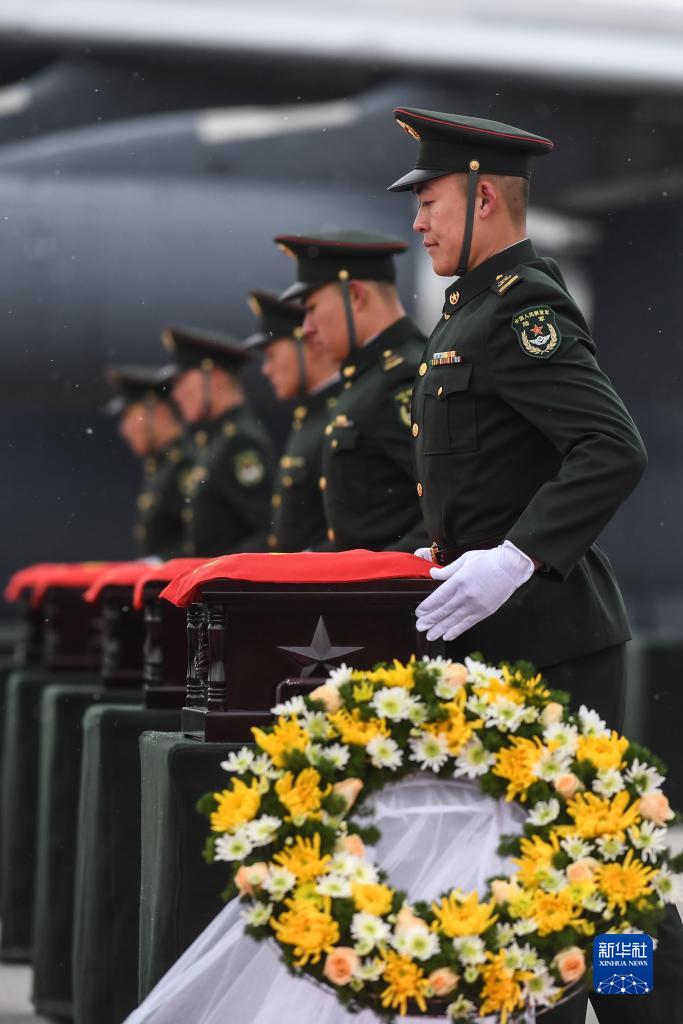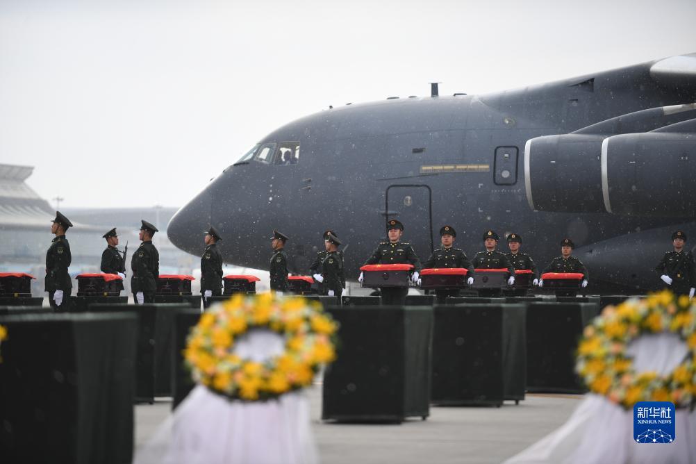当日,第十批在韩中国人民志愿军烈士遗骸由我空军专机护送从韩国接回辽宁沈阳,25位志愿军烈士遗骸及相关遗物回到祖国。