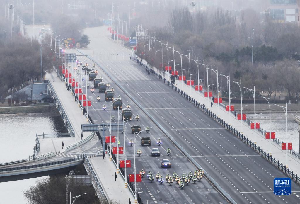 11月23日,运送志愿军烈士遗骸的车队经过沈阳青年大街。