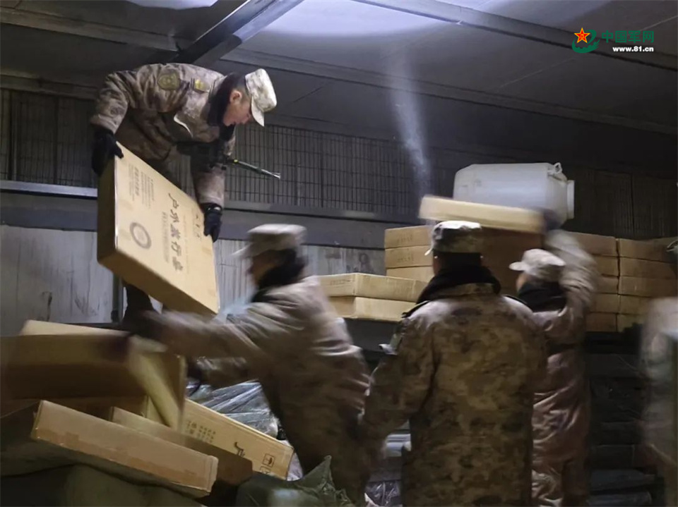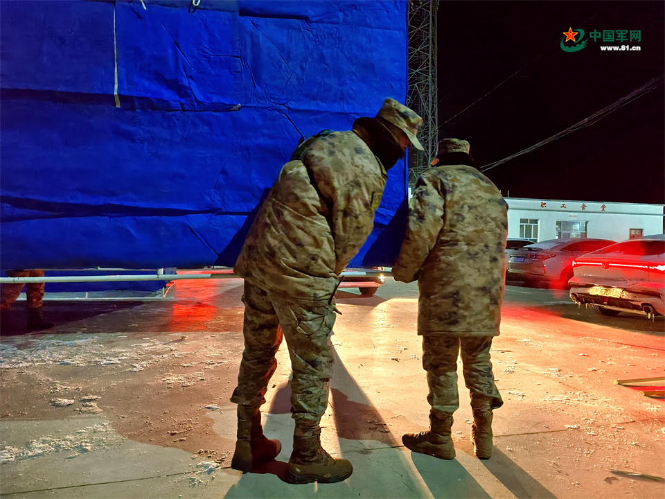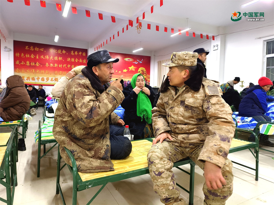 在安置点,新疆军区官兵帮助群众度过灾后第一个寒夜。
