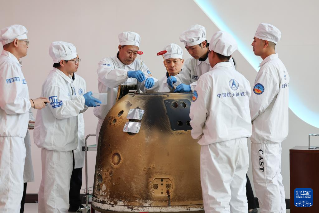 6月26日下午,嫦娥六号返回器开舱活动在中国航天科技集团五院举行。仪式现场,科研人员对嫦娥六号返回器进行开舱,检验关键技术指标完成情况。新华社记者 金立旺 摄