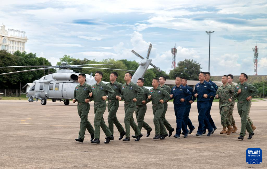 6月30日,在老挝万象瓦岱国际机场,空中参演分队抵达集结地域。新华社发(孟垂云摄)