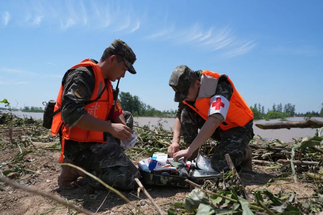 武警湖南总队任务官兵沿着二门闸南侧堤坝进行全天候清堤扫障、排查险情、处置管涌,并组织野战医疗队携带医疗卫生器材和生活保障物资,积极为受灾群众提供医疗服务,共调配发放药品3400余支,紧急处置地方中暑群众1例,受到群众高度赞誉。