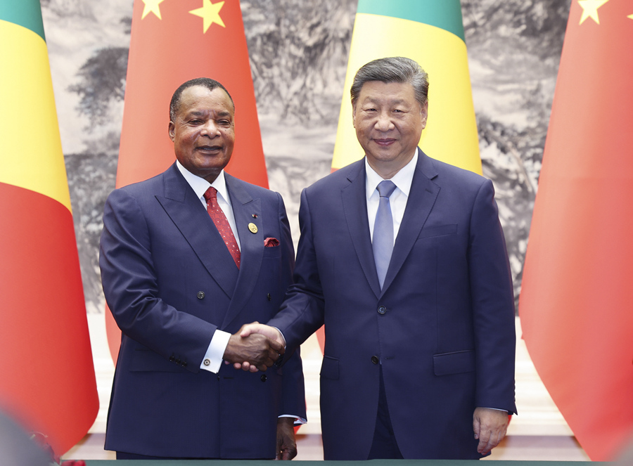 新华社北京9月6日电(记者马卓言、郭宇靖)9月6日上午,国家主席习近平在北京人民大会堂同来华出席中非合作论坛北京峰会并进行国事访问的刚果(布)总统萨苏举行会谈。