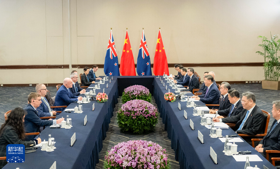 习近平指出,10年前,我访问新西兰,双方决定建立中新全面战略伙伴关系。10年来,中新关系保持健康稳定发展势头,有力增进了两国人民福祉,值得倍加珍惜。中新两国同为亚太地区重要成员,经济互补性、互惠性强,双方没有历史恩怨纠葛,没有根本利益冲突,应该把彼此视为机遇和伙伴,而不是挑战或威胁;应该冷静务实地管控分歧,而不是让分歧定义两国关系。中方愿同新方一道,继续发扬“争先”精神,共同打造相互尊重、彼此包容、聚焦合作、共同发展的中新关系,助力各自国家发展。