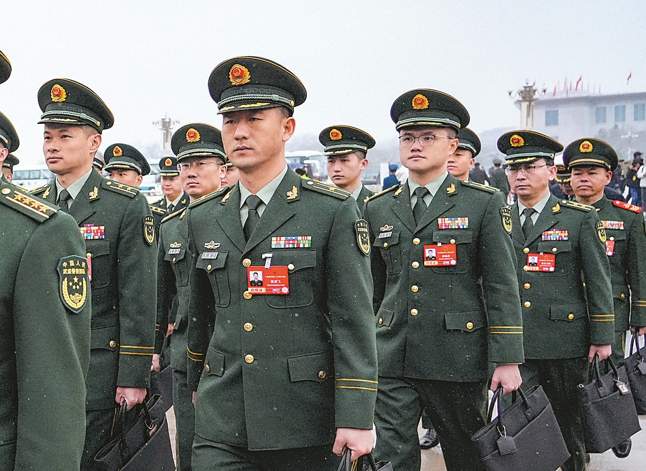 3月5日,十四届全国人大四次会议在北京人民大会堂开幕。图为军队人大代表列队走向会场。解放军报记者 王俊 摄