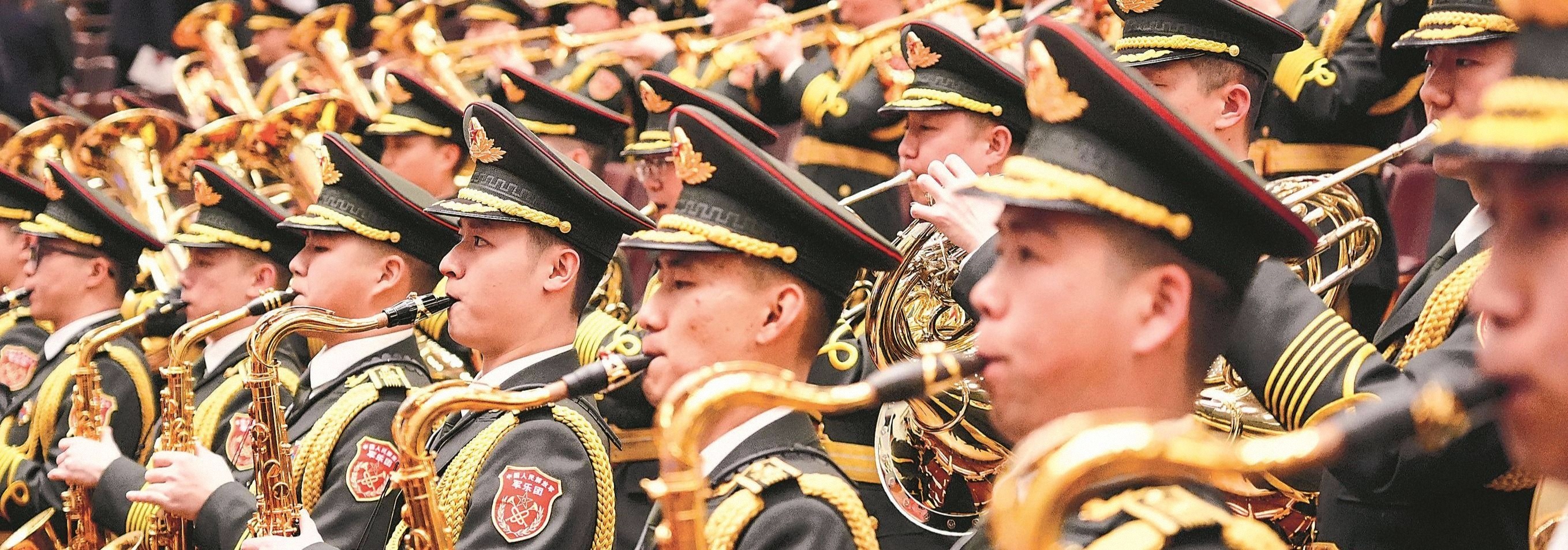 3月4日,全国政协十四届四次会议在北京人民大会堂开幕。图为军乐团现场演奏国歌。解放军报记者 刘妍 摄