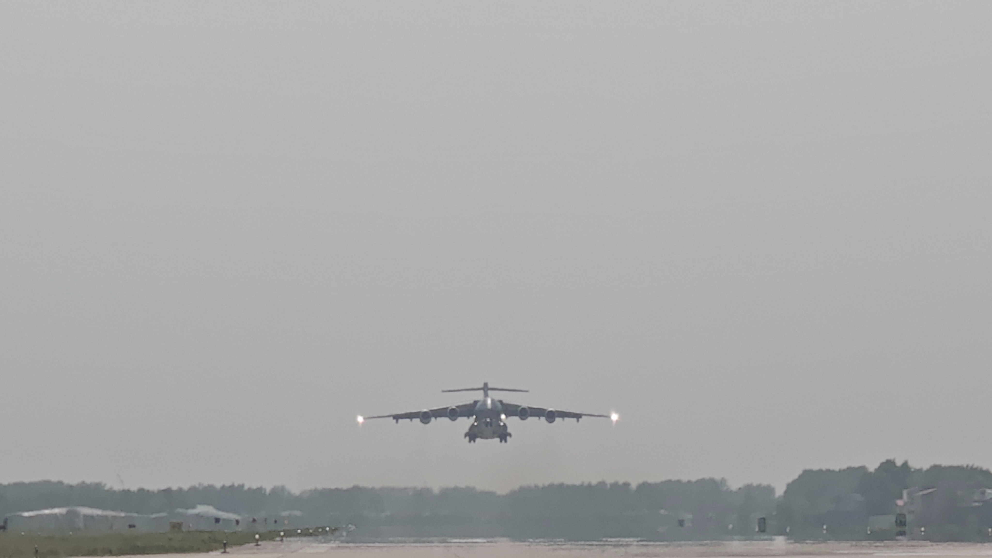 中国空军1架运-20B大型运输机从华中某机场起飞,执行赴韩国接迎第十三批在韩志愿军烈士遗骸回国的任务。