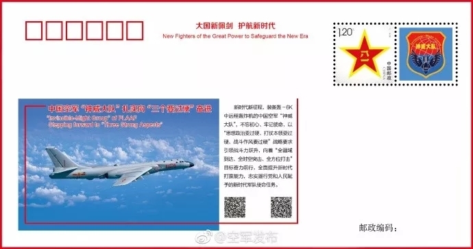 中国空军31日向海内外发布中英文版强军宣传片《战神展翅》,同时发布中英文版纪念封《神威大队》,生动展现轰-6K展翅远海远洋、书写强国强军新答卷的新时代强军故事。