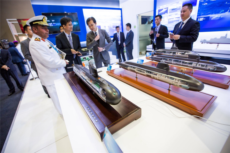4月16日,在马来西亚吉隆坡举行的第16届马来西亚亚洲防务展上,参观者在“中国防务”展区参观。新华社记者朱炜 摄