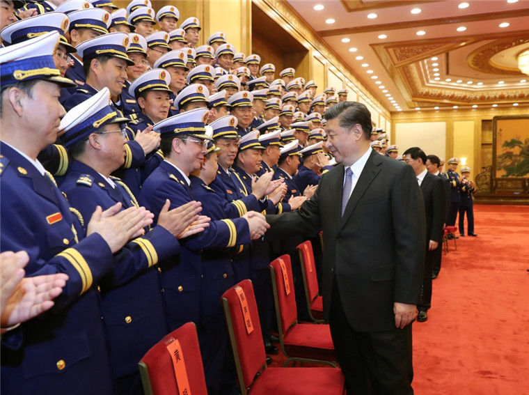 授旗仪式后,习近平等亲切接见国家综合性消防救援队伍总队级以上干部。 新华社记者 鞠鹏 摄