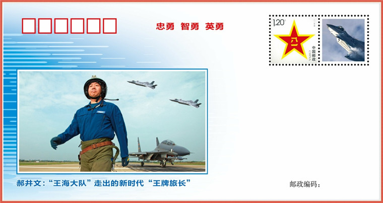 这次发布的强军风采邮封一套5枚,展现了郝井文爱军精武、矢志打赢的追梦英姿和新一代大国重器蓝天砺剑的勇猛神威,彰显了以郝井文为代表的新时代空军飞行员的忠勇、智勇和英勇。