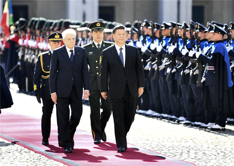 3月22日,国家主席习近平在罗马同意大利总统马塔雷拉举行会谈。会谈前,马塔雷拉总统为习近平举行隆重欢迎仪式。新华社记者 谢环驰 摄