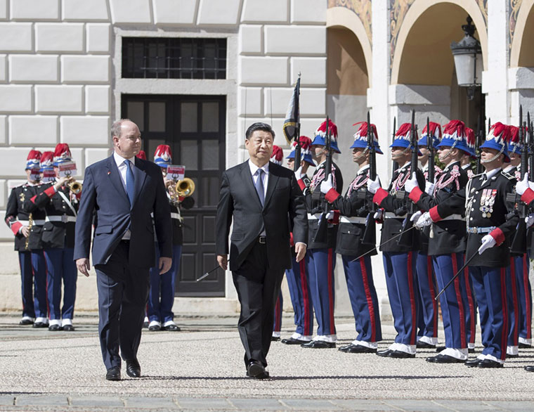 会谈前,阿尔贝二世亲王为习近平举行隆重欢迎仪式。