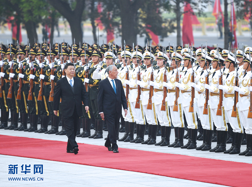 4月29日,国家主席习近平在北京人民大会堂同葡萄牙总统德索萨举行会谈。这是会谈前,习近平在人民大会堂东门外广场为德索萨举行欢迎仪式。 新华社记者 饶爱民 摄