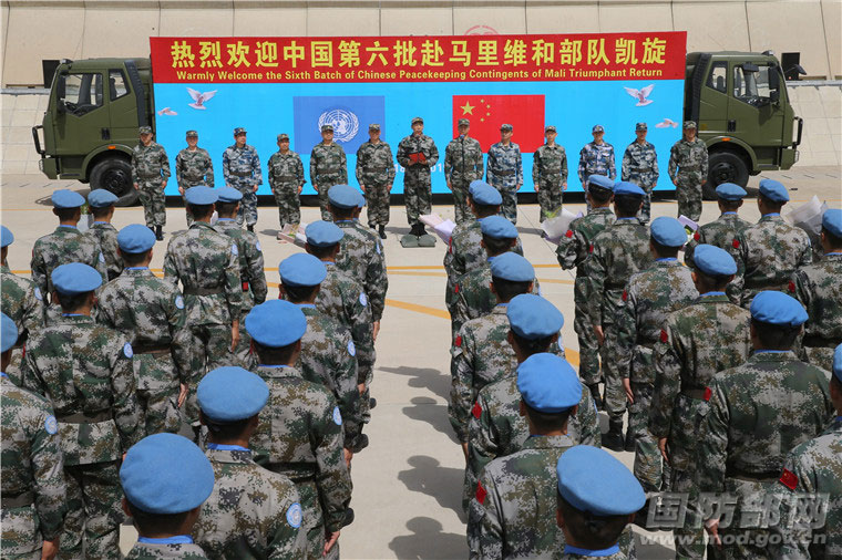 5月19日,中国第六批赴马里维和部队完成联合国赋予的维和任务后,第一梯队的205名维和官兵凯旋。