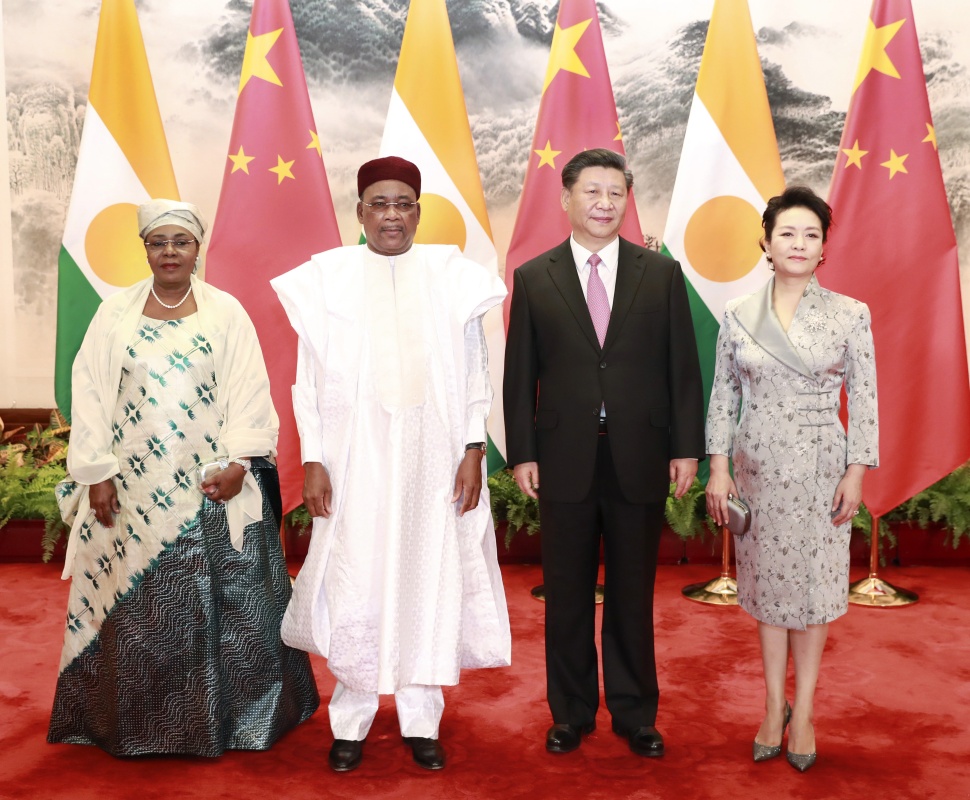 5月28日,国家主席习近平在北京人民大会堂同尼日尔总统伊素福举行会谈。这是习近平和夫人彭丽媛同伊素福夫妇合影。新华社记者 庞兴雷 摄