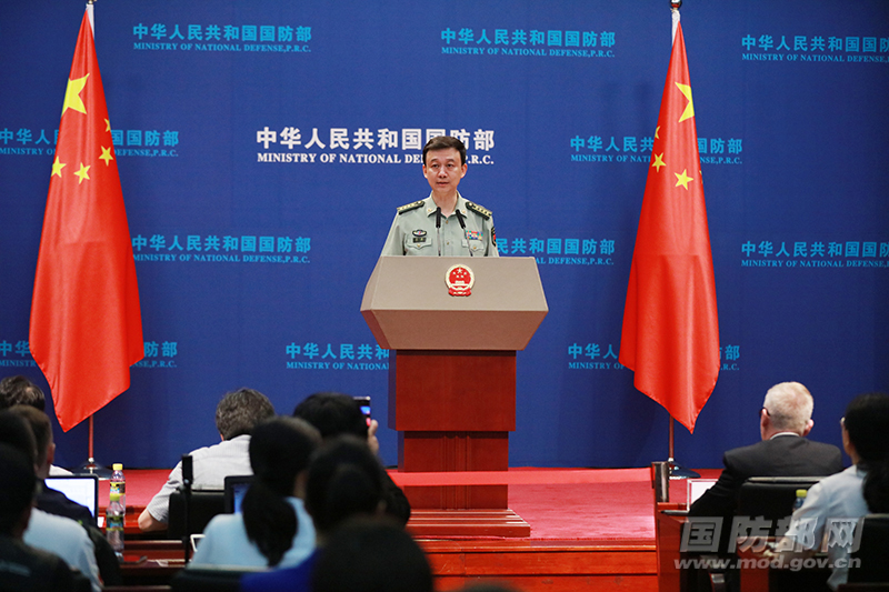 5月30日下午,国防部举行例行记者会,国防部新闻局局长、国防部新闻发言人吴谦大校答记者问。宣琦 摄