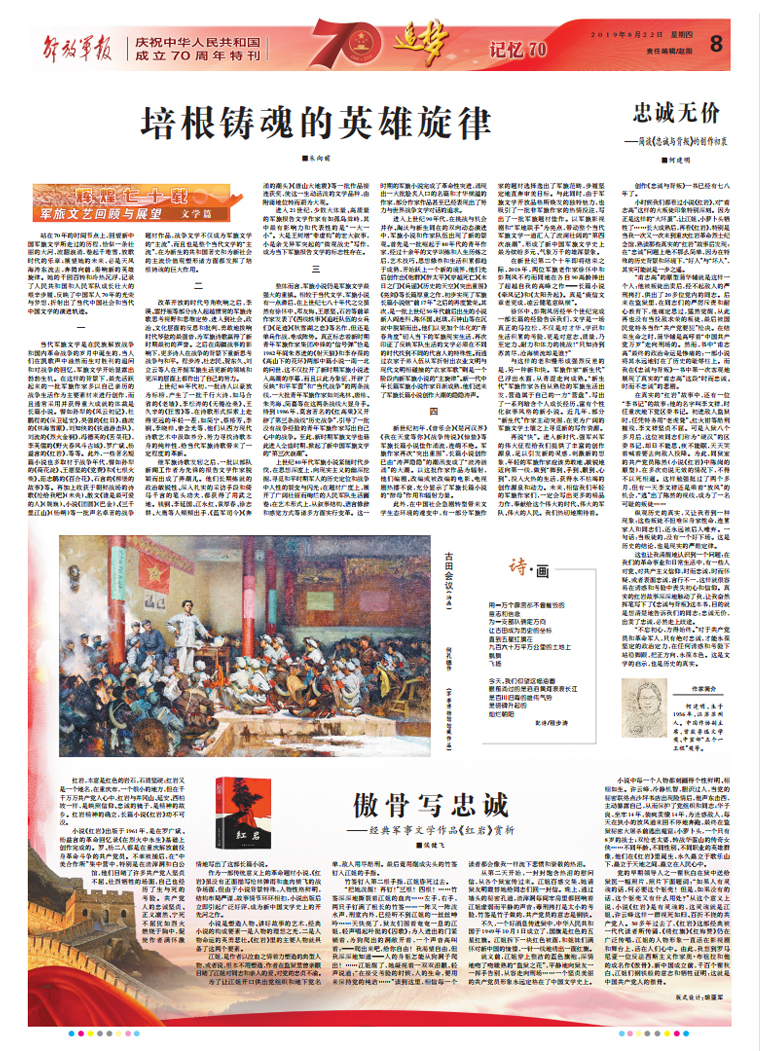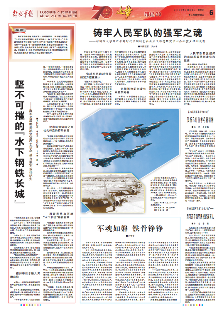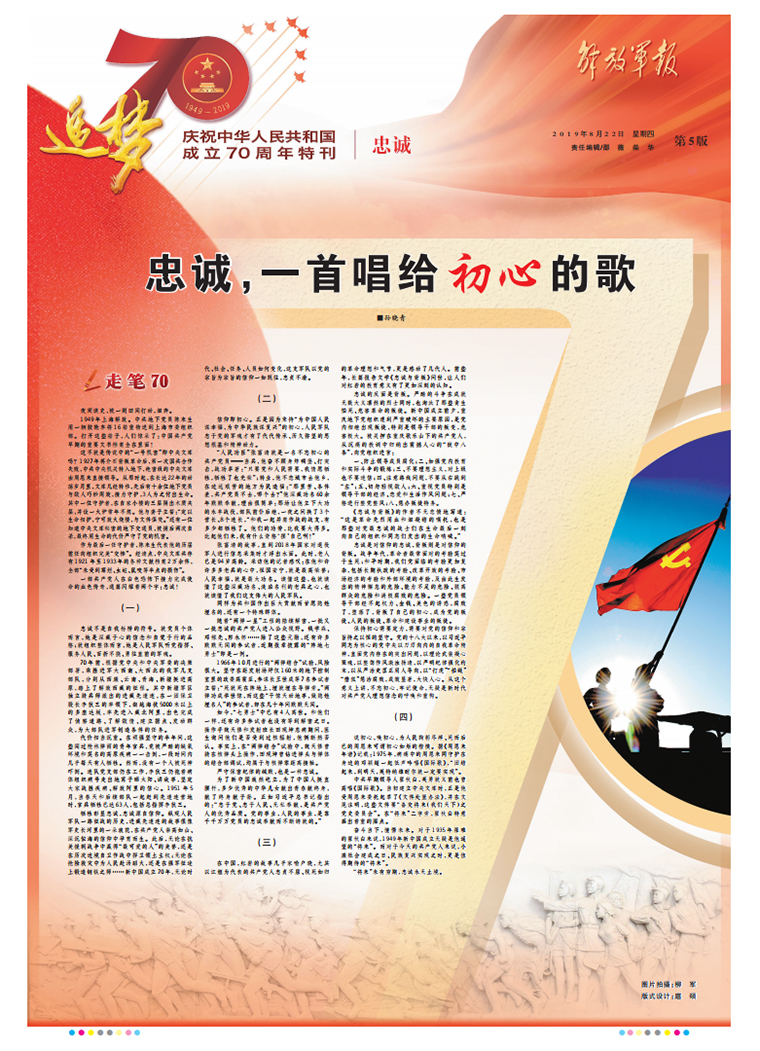 解放军报北京8月21日电 记者邵薇报道:风雨兼程,奋进如歌。在即将迎来新中国70华诞之际,本报陆续推出《庆祝中华人民共和国成立70周年特刊》。