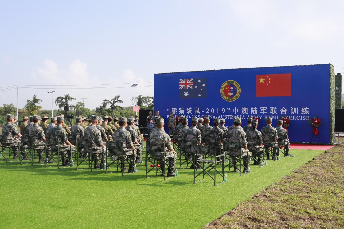 10月10日,“熊猫袋鼠-2019”中澳陆军联合训练开训仪式在陆军第74集团军某旅联训营地举行。新华社发(康雅 摄)
