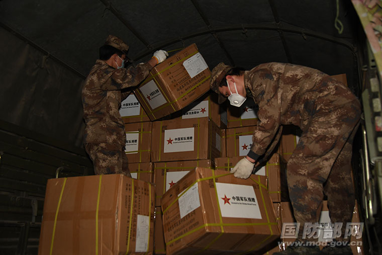 为帮助伊朗抗击疫情,中国军队向伊朗武装力量紧急提供核酸检测试剂盒、防护服和一次性医用外科口罩等医疗物资,上述物资于3月19日运抵伊朗。