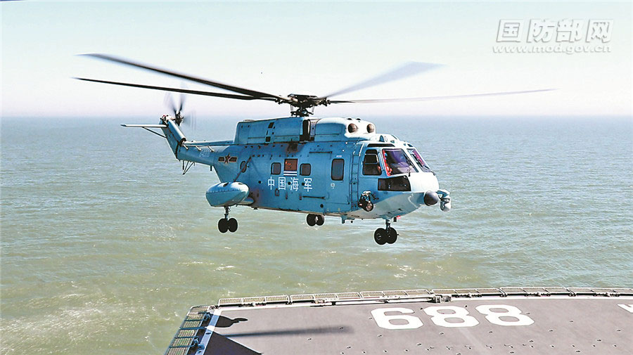 海军首批舰载直升机飞行学员完成着舰单飞。刘昭远摄