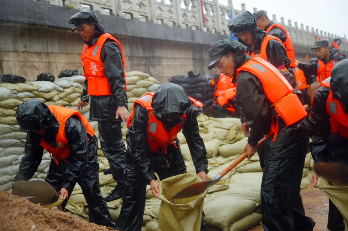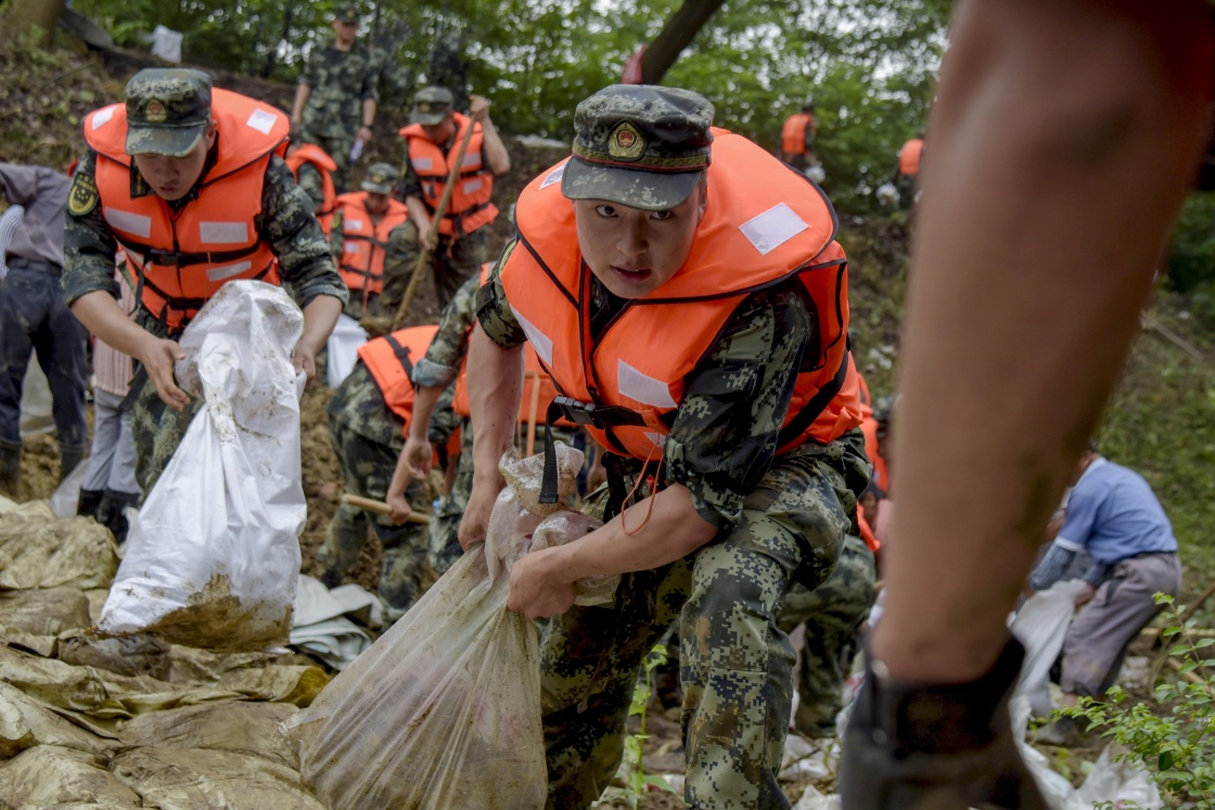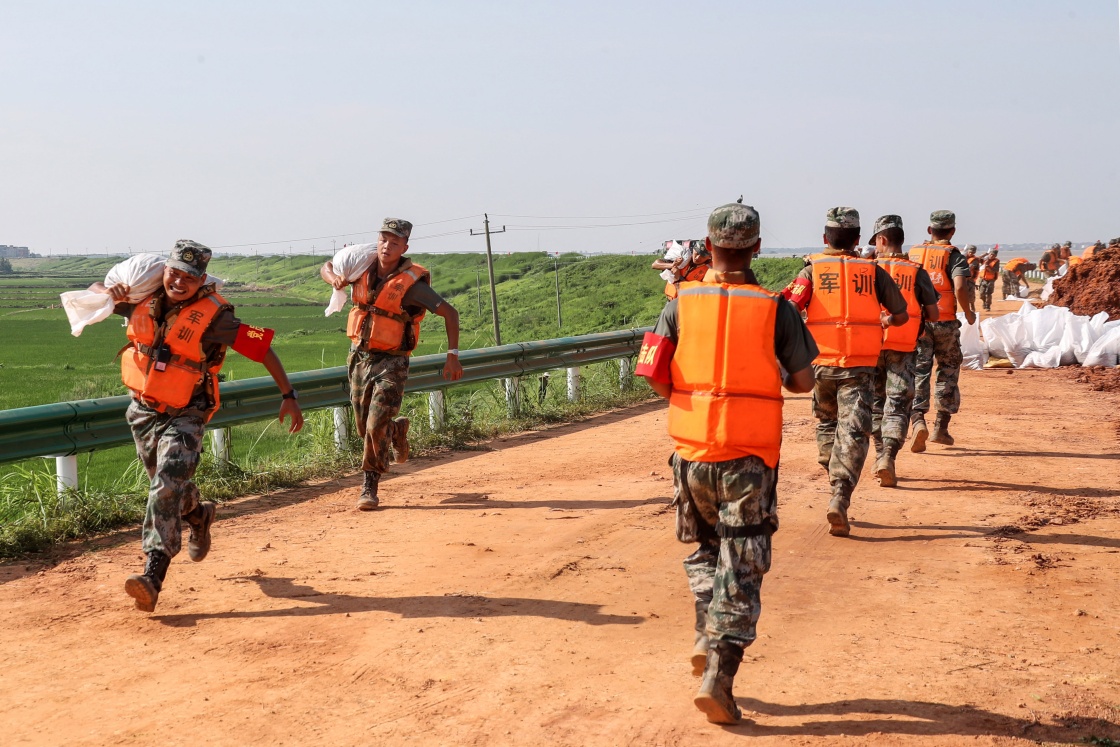 与此同时,第72集团军某旅1500余名官兵,也赶到鄱阳县,加入加固堤坝、封堵管涌的抗洪大军之中。