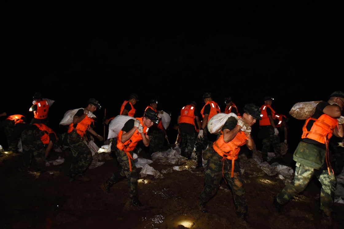 连日来,我国最大淡水湖鄱阳湖水位不断上涨。武警江西总队出动1400余名官兵火速驰援鄱阳湖,担负起转移受灾群众,搜救失联人员,加固泄洪堤坝等任务。12日7时,鄱阳湖鄱阳镇昌江圩江家岭村堤坝出现渗水群,总队300多名官兵轮流跳进深坑排除险情。