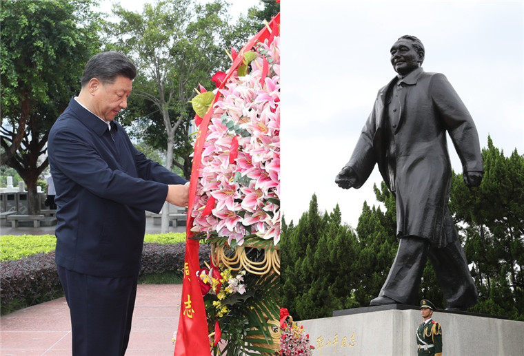 14日下午,习近平总书记来到深圳莲花山公园,向邓小平同志铜像敬献花篮,表达对邓小平同志的崇高敬意和深切缅怀。