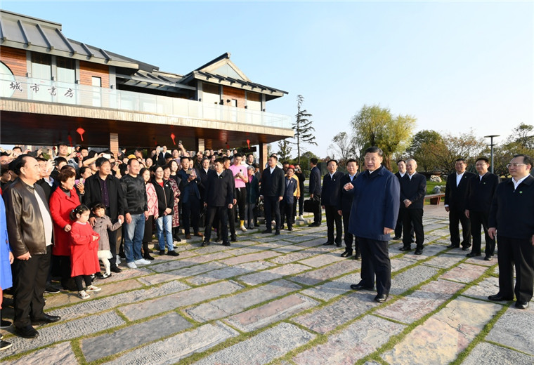 11月12日至13日,中共中央总书记、国家主席、中央军委主席习近平在江苏考察。这是12日下午,习近平在南通市五山地区滨江片区考察时,同市民群众亲切交流。新华社记者 谢环驰 摄