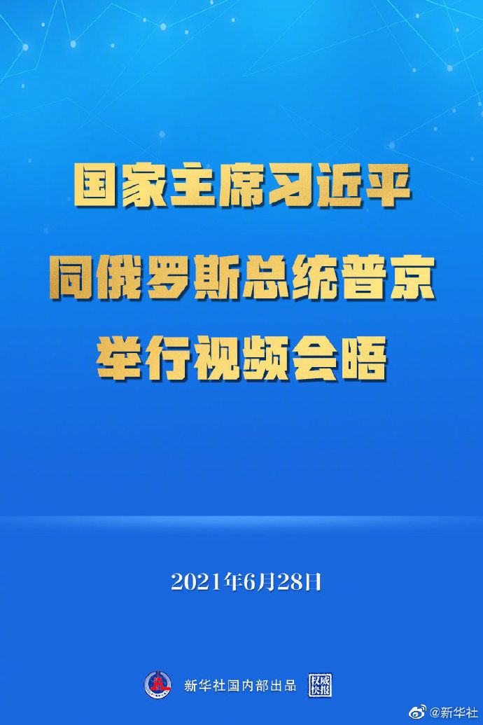 6月28日下午,国家主席习近平在北京同俄罗斯总统普京举行视频会晤。
