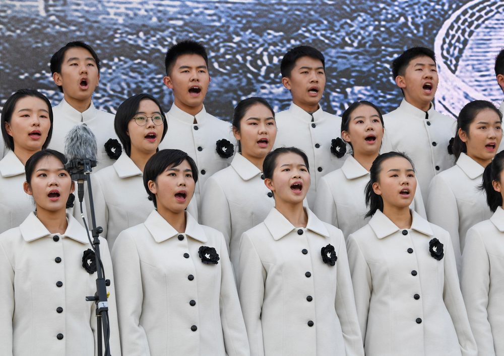12月13日,青少年代表在南京大屠杀死难者国家公祭仪式上宣读《和平宣言》。 新华社记者 李博 摄