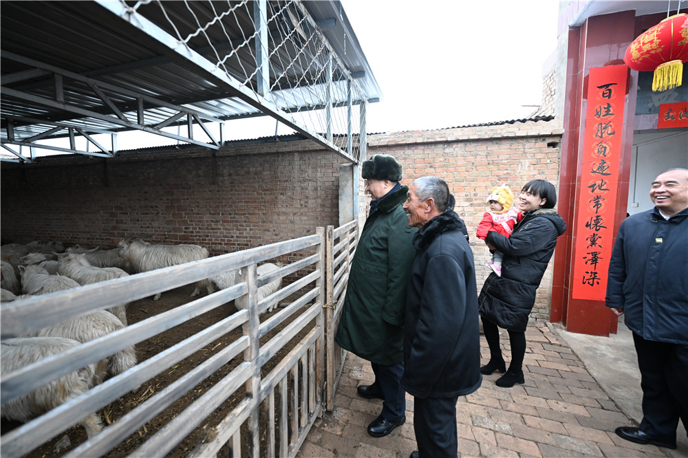 1月26日至27日,中共中央总书记、国家主席、中央军委主席习近平来到山西,看望慰问基层干部群众。这是26日下午,习近平在临汾市汾西县僧念镇段村蔡文明家察看羊圈。新华社记者 李学仁 摄
