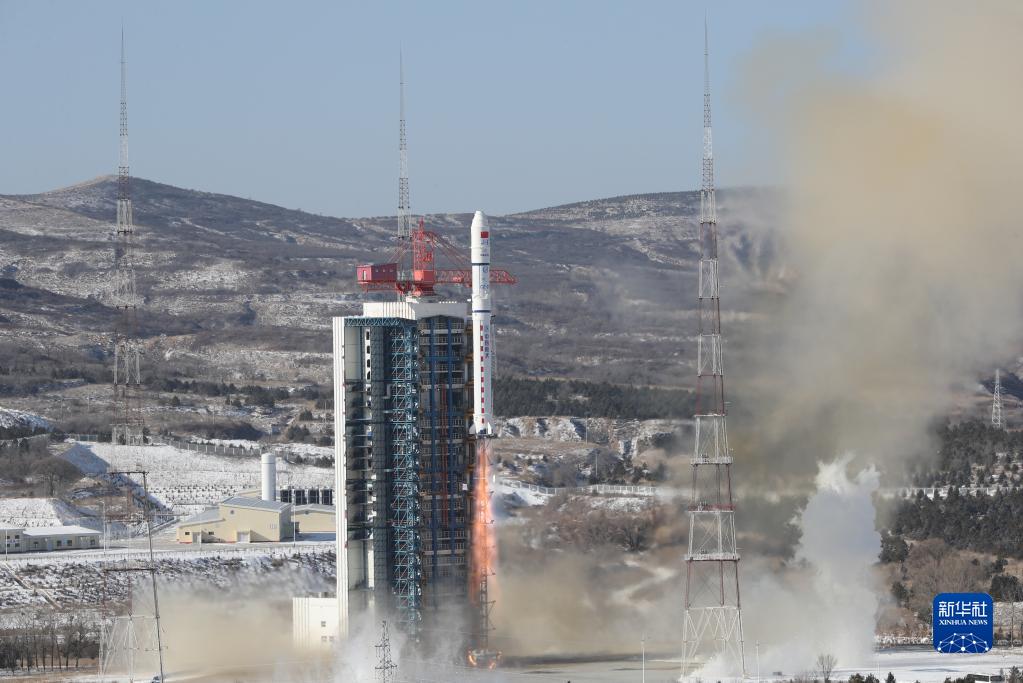 1月15日11时14分,我国在太原卫星发射中心使用长征二号丁运载火箭,以“一箭十四星”发射方式,成功将齐鲁二号/三号卫星及珞珈三号01星、吉林一号高分03D34星等14颗卫星发射升空,卫星顺利进入预定轨道,发射任务获得圆满成功。新华社发(王晓虎 摄)