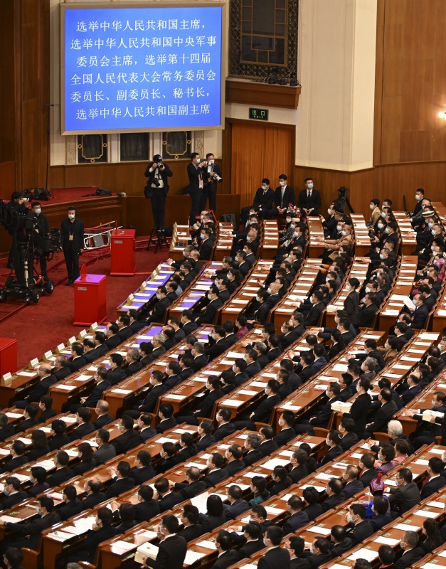 3月10日,十四届全国人大一次会议在北京人民大会堂举行第三次全体会议。新华社记者 燕雁 摄