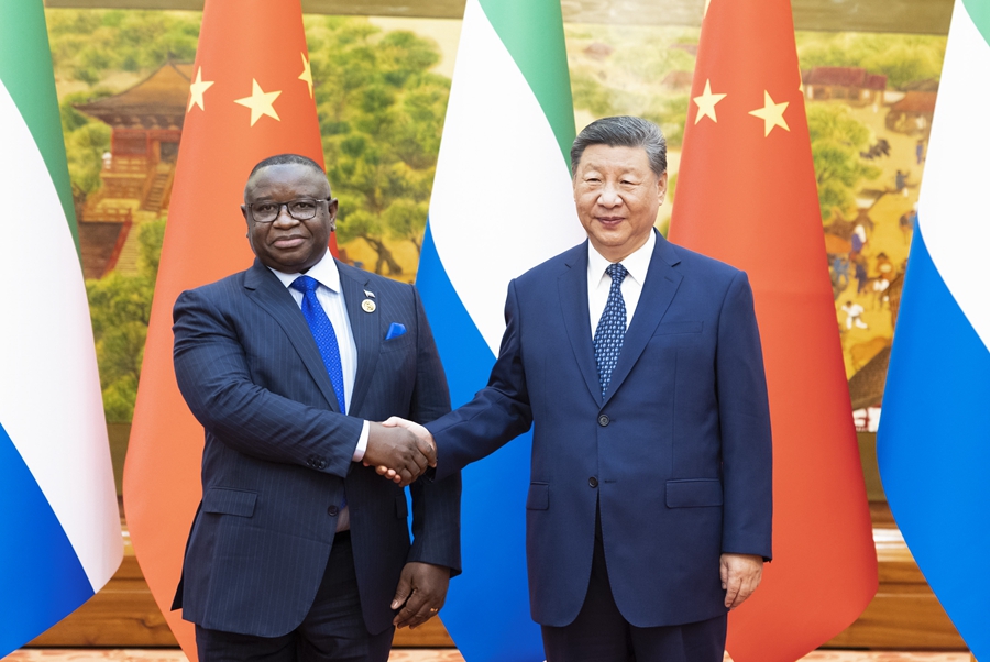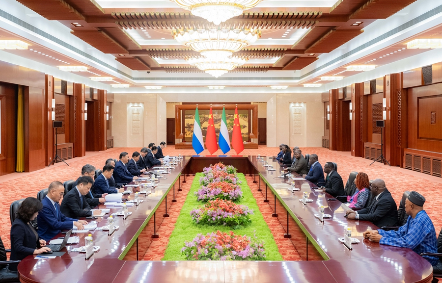 新华社北京9月4日电(记者邵艺博、丁静)9月4日上午,国家主席习近平在北京人民大会堂会见来华出席中非合作论坛北京峰会的塞拉利昂总统比奥。