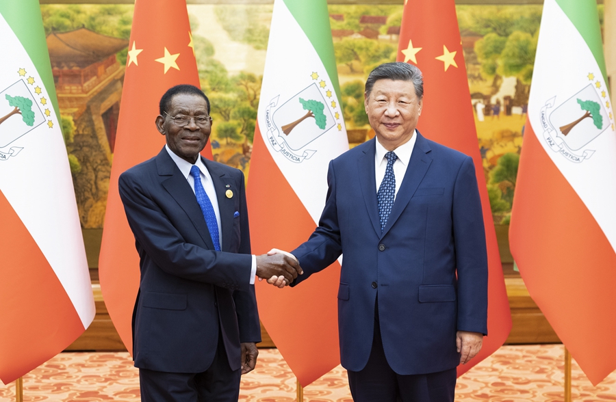 新华社北京9月4日电(记者邵艺博、熊琳)9月4日上午,国家主席习近平在北京人民大会堂会见来华出席中非合作论坛北京峰会的赤道几内亚总统奥比昂。
