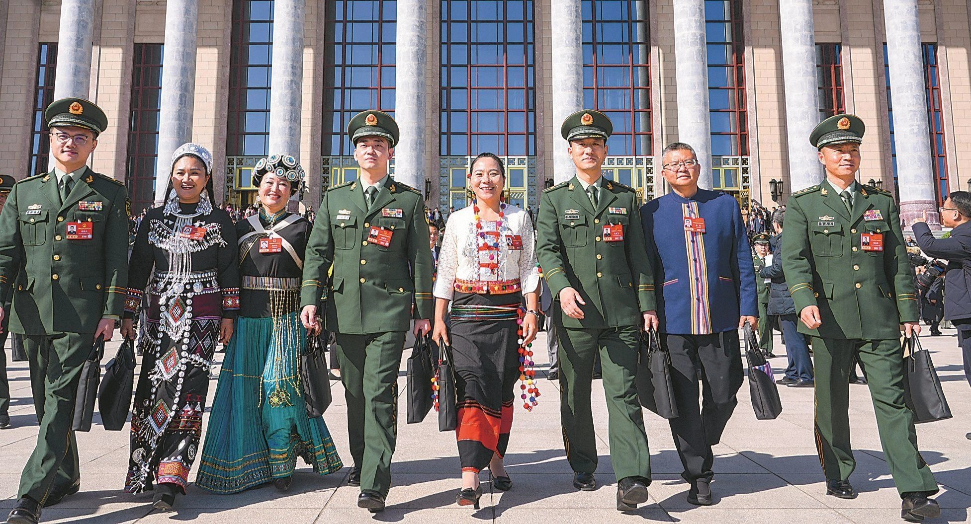 3月9日上午,十四届全国人大四次会议在北京人民大会堂举行第二次全体会议。图为会议结束后,军地代表走出人民大会堂。解放军报记者 王俊 摄