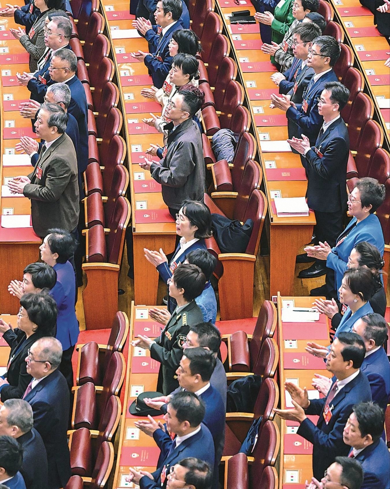 3月9日上午,十四届全国人大四次会议在北京人民大会堂举行第二次全体会议。图为代表们热烈鼓掌。解放军报记者 王俊 摄