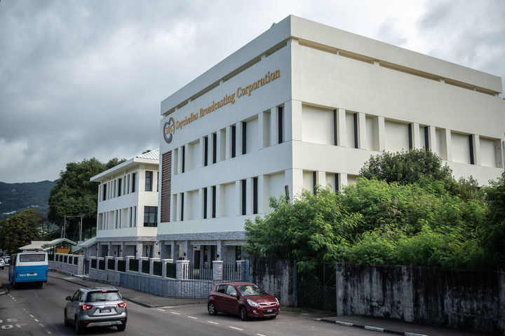 这是2024年6月5日在塞舌尔首都维多利亚拍摄的塞舌尔广电中心。中国援建塞舌尔广播电视中心项目位于塞舌尔首都维多利亚,由湖南省第六工程有限公司承建,总建筑面积约5600平方米,配备广播电视技术用房、办公用房及相关广电系统设备。新华社记者 王冠森 摄