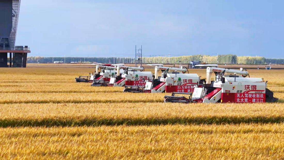 十月的三江平原,田畴广袤,稻谷金黄,搭载着测产装置的无人驾驶收割机在七星农场投入应用,阵阵稻香传递着丰收的喜悦,新质生产力赋能农业生产的画卷徐徐展开。