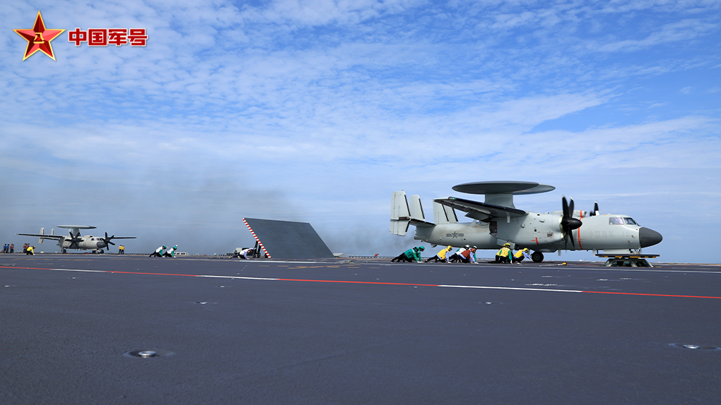 空警-600舰载固定翼预警机接续弹射起飞。常新鹏 摄
