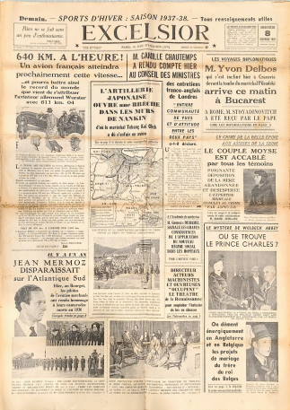 1937年12月8日发行的法国《卓越报》。(侵华日军南京大屠杀遇难同胞纪念馆供图)