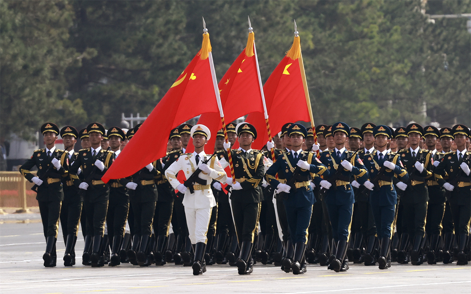 2025年9月3日,纪念中国人民抗日战争暨世界反法西斯战争胜利80周年大会在北京天安门广场隆重举行。这是中国人民解放军仪仗方队。新华社记者 王晔 摄