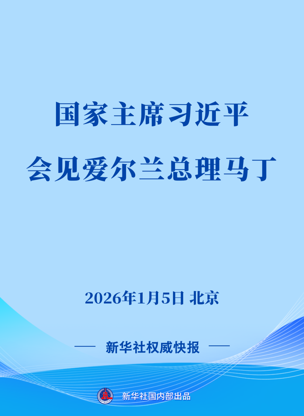 1月5日上午,国家主席习近平在北京会见来华进行正式访问的爱尔兰总理马丁。